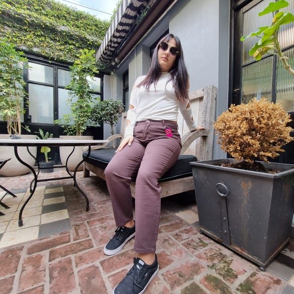Jean mom rigido color marron